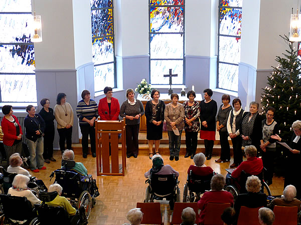 Dieses "Haus mit Ausblick zum Himmel" - wie es Weigt-Blätgen nennt - hat das 30jährige Bestehen mit einem Festgottesdienst, an dem Bewohnerinnen, Angehörige und Mitarbeiterinnen und Mitarbeiter teilnahmen, gefeiert. Fünfzehn Mitarbeiterinnen, die zwischen zehn und 30 Jahre im Hause tätig sind, wurden im Gottesdienst gesegnet und geehrt. Beim anschließenden Umtrunk kamen viele Geschichten aus den letzten drei Jahrzehnten zur Sprache.