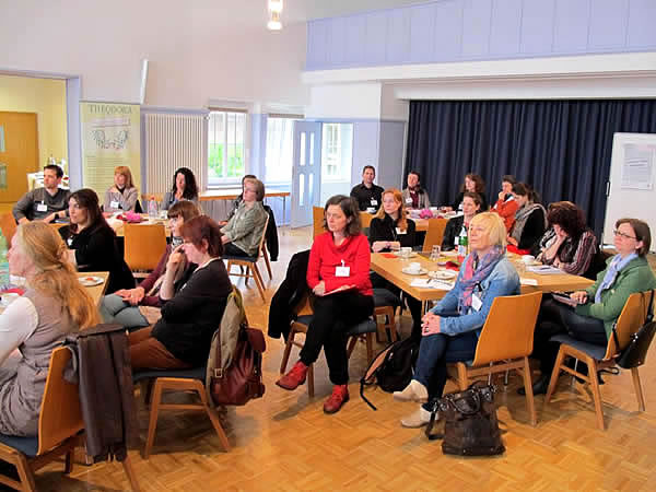 Die Evangelische Frauenhilfe in Westfalen e.V. lud daher Mitte Mai zu einer zweitägigen Fachtagung mit Erfahrungsaustausch zum Schwerpunktthema „Menschenhandel - Flucht - Europa“ nach Soest ein. 42 Mitarbeiterinnen aus 19 Beratungsstellen mit Sitz in Berlin, Dortmund, Düsseldorf, Duisburg, Essen, Herford, Herne, Kiel, Köln, Plauen und Stuttgart sowie mehrere Personen von der Polizei NRW und dem Bundeskriminalamt Wiesbaden, der Ausländerbehörde und des Bundesamtes für Migration und Flüchtlinge nutzten diese Gelegenheit. Vorträge über die internationale Bekämpfung des nigerianischen Menschenhandels aus Sicht der Polizei und der Beratungsstellen, zu Opfer von Menschenhandel im Asylverfahren aus Sicht der Behörden und der Beratungsstellen führten zu Diskussion und regem Austausch.