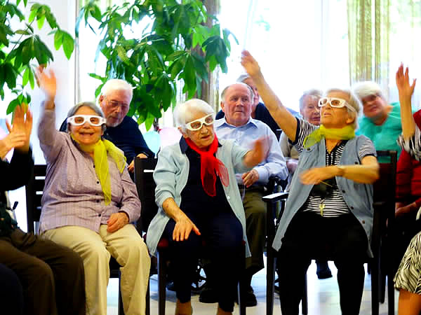 Unter dem Motto "Stars und Sternchen der 50er Jahre“ schlüpften Mitarbeiterinnen und Mitarbeiter in Kostüme der Stars und Helden der Zeit und sorgten mit Pettycoat und Pünktchenkleid für viel Applaus bei ihren Darbietungen. Einige der Bewohnerinnen und Bewohner hatten einen Sitztanz einstudiert, den sie den Gästen vorführten.