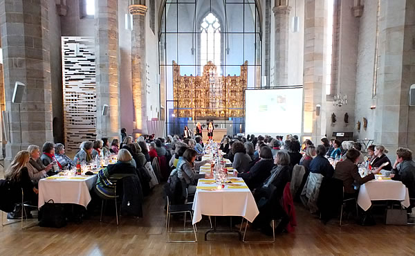 In Wohnzimmern verbinden sich verschiedene Welten: Die Berufs- und Familienwelt, die globale Welt mit ihren Herausforderungen und die virtuelle Welt. „Welche Frauenbilder begegnen uns zwischen Wohnzimmer und Welt?“, war das Thema des diesjährigen Frauenmahls, zu dem 155 Frauen am 19. Februar 2016 in die St. Petrikirche in Dortmund kamen.