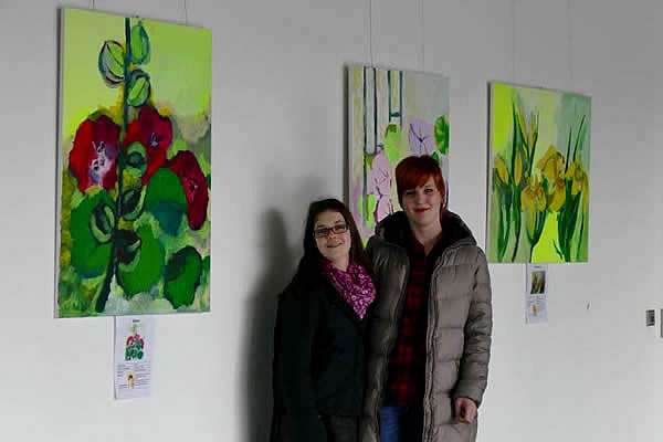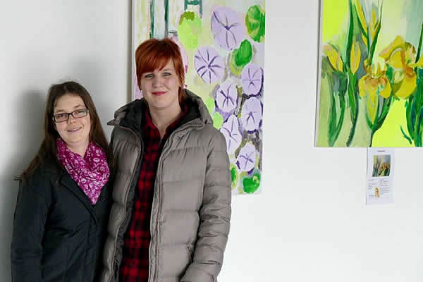 Svenja Müller und Christina Zeinoff stellen ihre Acryl-Bilder zum ersten Mal aus. Ihre Blumen-Bilder sind im Monat März in der Sparkasse in Alt-Wetter zu sehen.