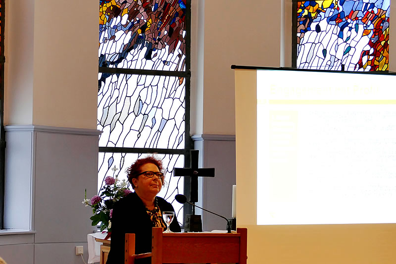 „Ehrenamtliche gehören nicht den Organisationen. Sie setzen Organisationen in Bewegung“, stellt Cornelia Coenen-Marx in ihrem Vortrag vor den mehr als 40 Delegierten der Evangelischen Frauenhilfe in Westfalen fest. Die wichtigsten Akteure im sozialen Ehrenamt seien Frauen, in Kirche und Diakonie noch immer etwa siebzig Prozent der Ehrenamtlichen. Christliche Ehrenamtliche seien aber nicht nur in Kirche engagiert; auch sie seien breiter vernetzt. Darin liege eine Chance, wenn Kirche sich ins Gemeinwesen öffnet.