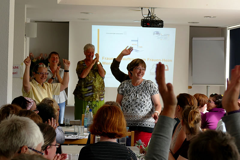 Zur ersten Frauen-Vollversammlung im Frauenheim Wengern kamen Anfang August 59 Frauen. Eingeladen hatte die Frauengruppe „Mutig und Stark“. Mitte Juli hatten sie mit ihrer Assistenz Sandra Förster die Einladung entworfen. Mit Hilfe der Verwaltung wurde diese in den Arbeits- und Wohnbereichen und in den Treffpunkten verteilt und so über 120 Frauen angesprochen.