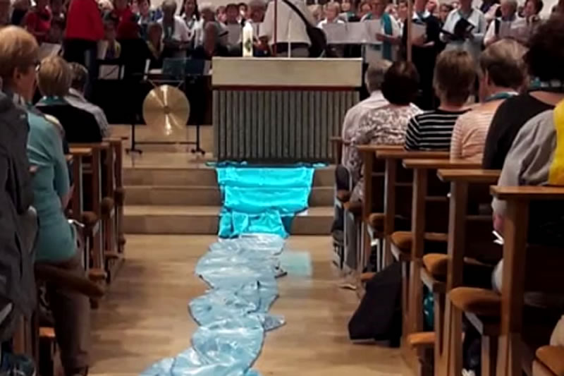 Der 140 Stimmen starke Frauen-Projektchor sorgte für gute Stimmung. Das 5köpfige ökumenische Frauenteam, Evangelische Frauenhilfe in Westfalen mittendrin, brachte Besucherinnen und Besucher auf eine ungewohnte Spur des Friedens. Abrüsten, Aufeinander zugehen, vertrauen, einander anstiften zum Frieden statt aufrüsten, so die eindrucksvolle Botschaft. Eine Botschaft, die im Herzen weiterwirken will.