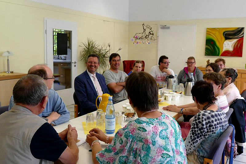 Der Arbeitskreis Politik, der 2017 die Fragen vorbereitet hatte, sowie die damaligen Teilnehmenden an der Wahlveranstaltung im Frauenheim waren sofort mit einer neuen Diskussionsrunde einverstanden. Da sich in den letzten zwei Jahren aber auch wieder viel Neues im Frauenheim getan hatte, wurde Bodo Middeldorf nicht nur Mitte Juli zum AK Politik eingeladen, sondern auch in den Berufsbildungsbereich der WfbM und in die Tagesstruktur Schöntal.