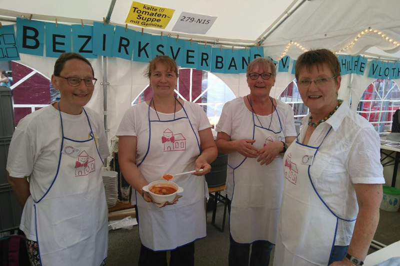 Der Bezirksverband Vlotho unterstützt den Kirchenkreis Vlotho am Abend der Begegnung mit einem Verpflegungsstand in der gastgebenden Region I, Ostwall mit Frauen(hilfe)gespräche und –begegnungen und Tomatensuppe.