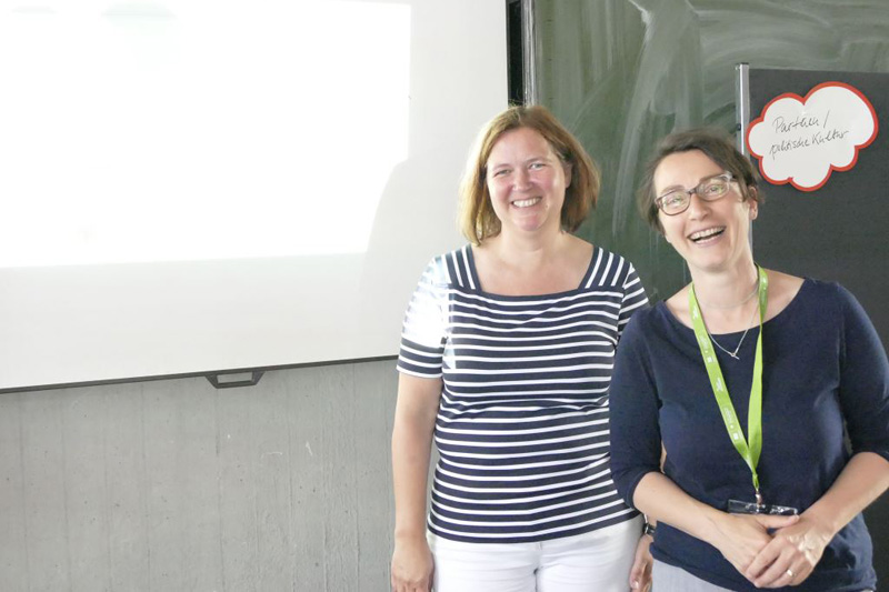 Maresa Feldmann (Stadt Dortmund) und Beate von Miquel (Evangelische Frauenhilfe in Westfalen/Deutscher Frauenrat) luden ein, über Parität in Parlamenten zu diskutieren. Das Motto des Workshops lautete „Statt Blumen und Präsente - mehr Frauen in die Parlamente“ im Dortmunder Workshophaus. Es diskutierten Frauen mit Politikerfahrung, die von der Ochsentour durch Parteigremien erzählten und Einsteigerinnen, die berichteten, dass gerade junge Frauen in Parteien nicht ernst genug genommen würden. Thematisiert wurde auch die Rolle und der Einfluss sozialer Medien im politischen Meinungsbildungsprozess - derzeit könne ein einziges Youtube-Video eine ganze Partei aufmischen. In der spannenden Diskussion, die vom Austausch über Generationen hinweg lebte und profitierte, wurde deutlich: es braucht eine andere politische Kultur, um den Politik“betrieb“ für Frauen attraktiver zu machen. Unter großem Applaus wurde schließlich festgestellt, das die Vereinbarkeit von Familie, Beruf und Politik nicht nur eine Herausforderung für Frauen sei, sondern Männer ihren Teil der Familienarbeit übernehmen müssten, um Frauen in der Politik den Rücken frei zu halten.