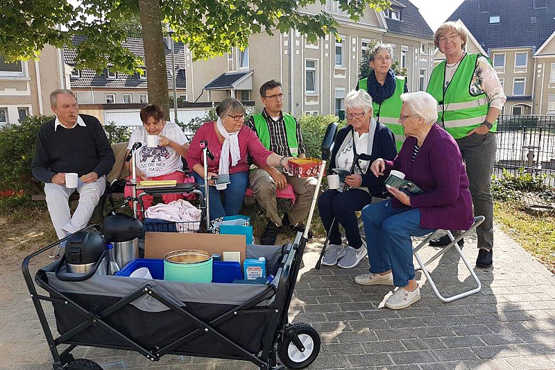 Die Idee dazu entstand im Mai dieses Jahres auf der Stadtteilkonferenz für Alt-Wetter. Gemeinsam mit Bürger*innen, lokalen Vereinen, Institutionen und Organisationen wollte die Stadt Wetter herausfinden, wie der Ortsteil lebens- und liebenswerter gestaltet werden kann. Und so erzählten u.a. Claudia Kockskämper, Jürgen Schneider, Horst Jung (Mitglieder des Beirates der Bewohnerinnen), Susanne Putscher (Bewohnerin) und Britta Jarick: „Die Leute müssen sich besuchen. Bei Kaffee und Kuchen. Dann weiß man, was sie brauchen. Jemanden zum Taschentragen. Jemanden, der weiß, wo was steht. Jemanden, den man Fragen kann.“