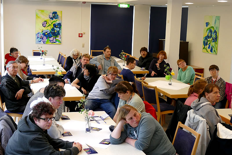 Der Europaabgeordnete Prof. Dr. Dietmar Köster stellte - nach der Vorstellung des SPD-Wahlprogrammes - sich den Fragen im Gesprächsforum „Inklusion und Teilhabe“ des FRAUENHEIM WENGERN. Bei den Fragen der Mitarbeiter*innen, Beschäftigten, Bewohner*innen und Klient*innen der Behinderteneinrichtungen ging es um die Umsetzung der UN-Behindertenrechtskonvention auf europäischer Ebene, um behindertengerechten Wohnraum, geschützte Arbeit und Verdienstmöglichkeiten für Menschen mit Behinderungen in Europa sowie die verbindliche Anwendung leichter Sprache.