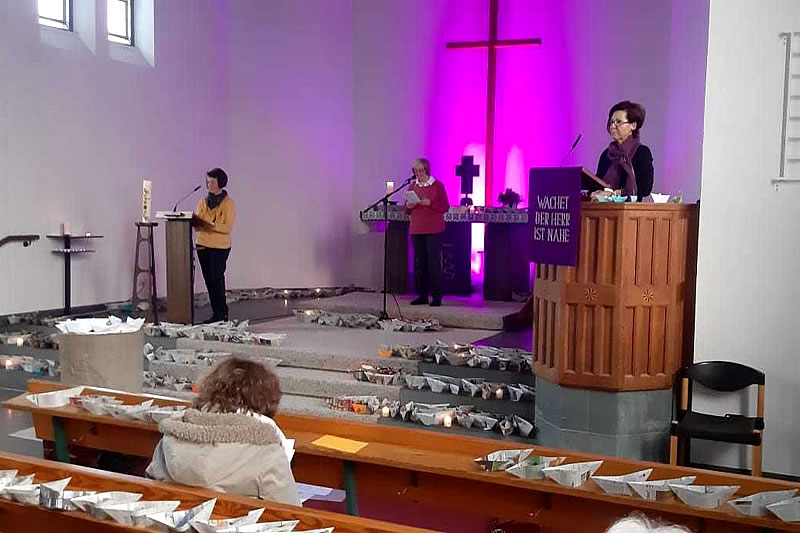 Mit der Aktion „Tausend Boote falten - in Gedenken an die Toten im Mittelmeer“ rief der westfälische Frauenverband auf, aus Zeitungspapier Schiffe zu falten. 1.319 Papierboote sollten es mindestens sein, denn so viele Menschen fanden nach Angaben der UNO-Flüchtlingshilfe 2019 den Tod. Damit soll an unterschiedlichen öffentlichen Orten in Westfalen der Forderung nach einem Ende der Kriminalisierung der zivilen Seenotrettung Ausdruck gegeben werden.