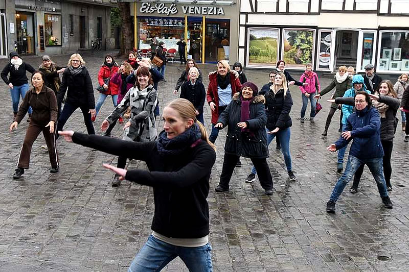 Tanzen als Protest gegen geschlechtsspezifische Gewalt (One billion rising) gab es wie im letzten Jahr wieder u.a. auf dem Soester Marktplatz. Stefanie Feldmann, Inhaberin des Soester Ballettstudios, unterstützte die Aktion der "Kreiskooperationsrunde gegen Gewalt" und der Gleichstellungsbeauftragten des Kreises. „Menschen, die sich bewegen, bewegen etwas“ – dieser Meinung waren etwa 50 Interessierte und führten den Tanz „Break the chain“ durch.