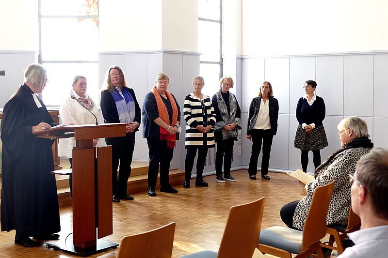 Dr. Beate von Miquel (Bochum) als stellvertretende Vorsitzende, Helga Berghoff (Bochum), Pfarrerin Petra Buschmann-Simons (Bergkamen), Rechtsanwältin Christiana Grimm (Werl), Dorothe Müller (Schwerte), Heike Henrichs-Neuser (Siegen) und Studienrätin Daniela Stiftel-Völker (Meschede) wurden in einem Gottesdienst der Evangelischen Frauenhilfe in Westfalen feierlich in ihre vierjährige Vorstands-Amtszeit Ende Oktober in Soest eingeführt. Mehr als 30 Gäste, teils Angehörige und Freunde der Vorstandsfrauen, teils Mitglieder des Verbandes, waren aus diesem Anlass gekommen.