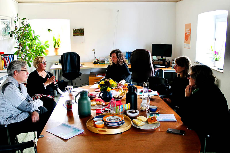 Corinna Dammeyer, Sozialarbeiterin der Beratungsstelle NADESCHDA, sowie die Leitende Pfarrerin der Evangelischen Frauenhilfe in Westfalen e.V., Birgit Reiche, tauschten sich mit Verena Schäffer MdL, Grünen Fraktionsvorsitzende, Jule Wenzel MdL, Sprecherin für Sozialpolitik der Grünen im Landtag NRW, und Norika Creuzmann, Sprecherin für Kinder- und Jugendschutz sowie Abgeordnete aus Ostwestfalen-Lippe vor Ort aus.