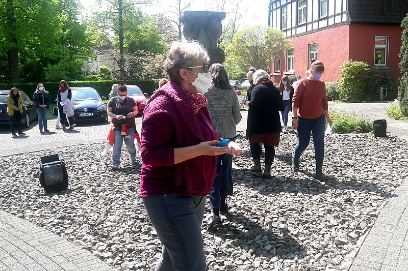 Mehr als 35 Mitarbeitende der Soester Einrichtungen der Evangelischen Frauenhilfe in Westfalen fanden sich auf dem Gelände am Feldmühlenweg zum Friedensgebet zusammen.