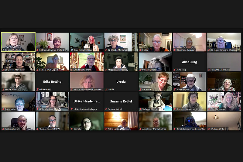 Der Eccles Community Choir aus Salford hatte für diesen Abend drei Lieder einstudiert und mit einer Bildpräsentation versehen, so dass Klänge und Bilder die Gespräche ergänzten. Die Vorstellung der Partnerschaft zwischen Salford und Dortmund-Lünen ließ erkennen, wie Miteinander-Lernen und Gemeinschaft-Leben von Christ*innen über Grenzen hinweg gelingen kann. Eine Meditation zum Titelbild und ein Reisesegen mit Segensbändchen verabschiedeten die Teilnehmenden.
