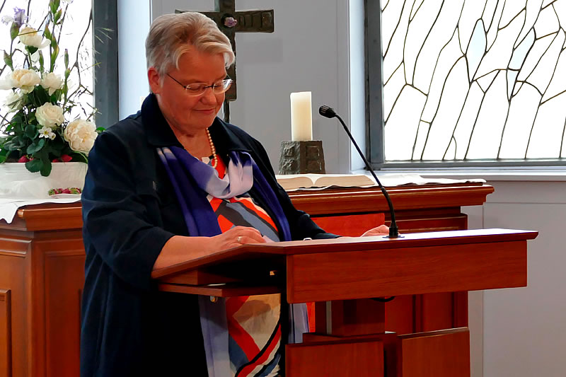 Angelika Waldheuer wurde mit großer Zustimmung von den anwesenden Delegierten wiedergewählt. „Jetzt gibt es weitere viele harte Nüsse zu knacken… Aber wir haben ja die richtigen Werkzeuge und Strategien entwickelt“, sagte die 71jährige nach ihrer Wahl. Das Wahl-Ehrenamt als Vorsitzende des Landesverbandes der Westfälischen Frauenhilfe nimmt die Münsteranerin gemeinsam mit einem 16 Personen umfassenden ehrenamtlichen Vorstand und der Leitenden Pfarrerin, Birgit Reiche, wahr. Die gelernte Erzieherin und Steuerfachangestellte nennt sich selbst eine „aktive Rentnerin“. Im Bezirksverband der Frauenhilfen im Kirchenkreis Münster ist sie seit 2010 gewählt.