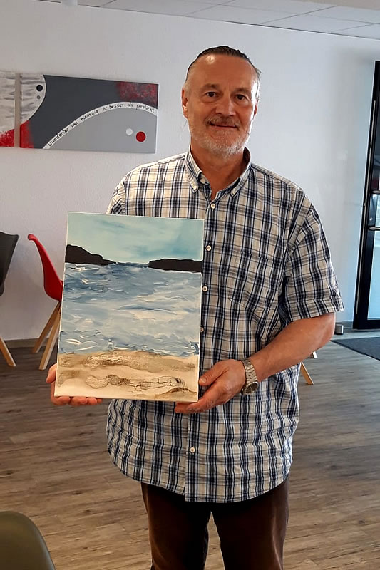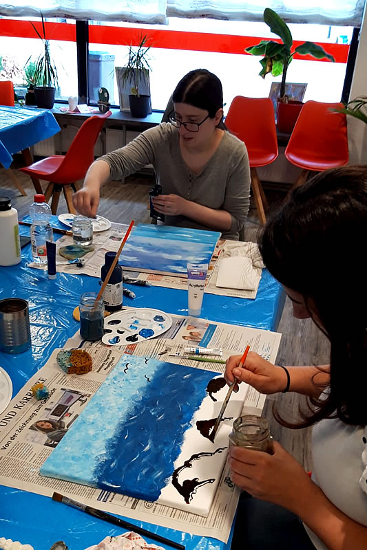 Kreativsein macht einfach unglaublich viel Spaß – das wissen viele. Alle zwei Wochen findet in den Räumlichkeiten des „Ambulant Betreuten Wohnen Frauenhilfe“ ein Kreativkurs statt. Zurzeit malen sechs Klient*innen unter Leitung von Cornelia Ziemke Bilder und lassen ihren Ideen freien Lauf.