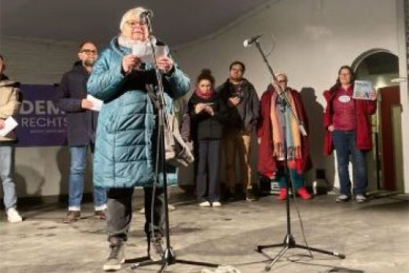 So gehörten auch sie zu den 5.000 Menschen, die laut polizeilicher Meldung an dieser "friedlichen" Demonstration teilgenommen haben. Das Statement auf der Bühne von der Vorsitzenden der Frauenhilfen in Hagen, Monika Dittmar, war eingerahmt in die Jahreslosung 2024 aus 1. Korinther 16, Vers 14: "Alles, was ihr tut, geschehe in Liebe" und endete mit Vers 13, der da heißt: "Seid wachsam und steht im Glauben, seid mutig und stark."