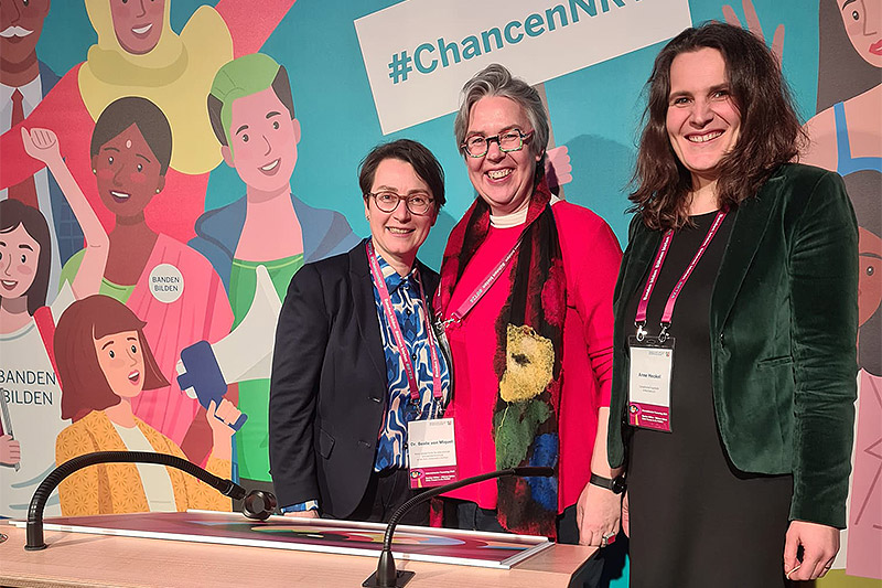 Unter dem Motto „Banden bilden – Bühnen bieten. Mehr Frauen in die Politik!“ lud Gleichstellungsministerin Josefine Paul Anfang März dazu ein, über die Hürden für politisches Engagement von Frauen gemeinsam zu diskutieren. Die Evangelische Frauenhilfe in Westfalen e.V. (EFHiW) war mit Pfarrerin Birgit Reiche, Geschäftsführerin, und Pfarrerin Anne Heckel, Geschäftsfeldleitung Anti-Gewalt-Arbeit der EFHiW, vor Ort.