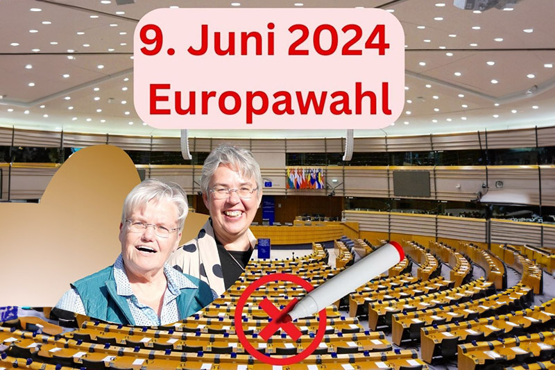Pfarrerin Birgit Reiche und Vorsitzende Angelika Waldheuer (v.r.) rufen alle Menschen zur Beteiligung bei den diesjährigen Wahlen zum Europäischen Parlament auf.