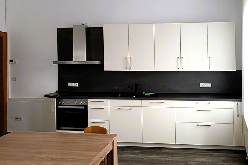 In den Räumlichkeiten der Bahnhofstr. 26 gibt es neben einer großen Gemeinschaftsküche auch ein Büro, in dem werktags tagsüber Ansprechpersonen für unsere Bewohnerinnen und Bewohner erreichbar sind“, erläutert Jörn Hackbusch und ergänzt: „Eine nächtliche Betreuung wird es nur telefonisch geben.“ Das Angebot richtet sich somit an insgesamt neun Personen, die mit einer aufsuchenden Hilfe in ihrer eigenen Häuslichkeit – dem ambulant betreuten Wohnen – nicht ausreichend unterstützt sind, aber gleichzeitig auch keiner stationären Unterstützung – wie die der besonderen Wohnform – bedürfen.