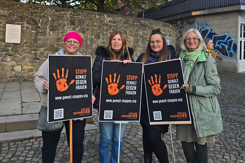 Gemeinsam ein Zeichen setzen, damit deutlich wird, dass Ungerechtigkeit und Gewalt gegen Mädchen nicht länger toleriert werden darf! Frauen und Männer gingen am Weltmädchentag in Bünde gemeinsam auf die Straße, um gegen die Gewalt und Ungerechtigkeit, die Mädchen weltweit erfahren, zu demonstrieren.