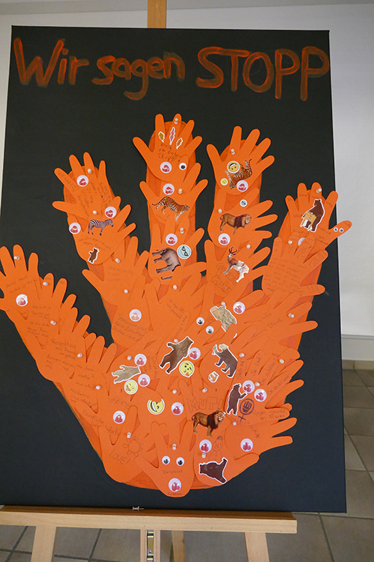 Im Rahmen des Jubiläums wurde die Mitmach-Aktion „The Orange Hands“ ins Leben gerufen. Teilnehmerinnen gestalteten kleine orangefarbene Papierhände mit persönlichen Botschaften gegen Gewalt an Frauen. Die individuellen Beiträge – von ermutigenden Worten über klare „Nein zu Gewalt“-Statements bis hin zu Wünschen für eine sichere und gleichberechtigte Zukunft – wurden zu einer großen Leinwand zusammengefügt. Das entstandene Bild einer großen orangefarbenen Hand symbolisierte Gemeinschaft, Solidarität und den gemeinsamen Einsatz gegen Gewalt.