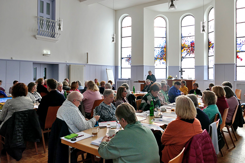 „Als Frauenhilfe gestalten wir Demokratie mit, indem wir die Würde jedes Menschen achten und gemeinsam Verantwortung übernehmen – getragen vom Evangelium und dem Geist des Grundgesetzes“, fasste Birgit Reiche, Leitende Pfarrerin der Evangelischen Frauenhilfe in Westfalen e.V. (EFHiW) die Arbeit in den letzten Monaten zusammen. Sie fügte während der Mitgliederversammlung am 30. Oktober 2025 in Soest hinzu: „Auch nach fast 120 Jahren des Bestehens wissen wir: Es lohnt sich, anzupacken statt zu meckern, denn wir sind berufen, Licht der Welt und Salz der Erde zu sein.“ Rund 70 Delegierte und Gäste kamen zusammen, um gemeinsam über zentrale Themen zu beraten und wichtige Entscheidungen zu treffen. Den Auftakt bildete ein gemeinsamer Gottesdienst, der Raum für Besinnung und Austausch bot.